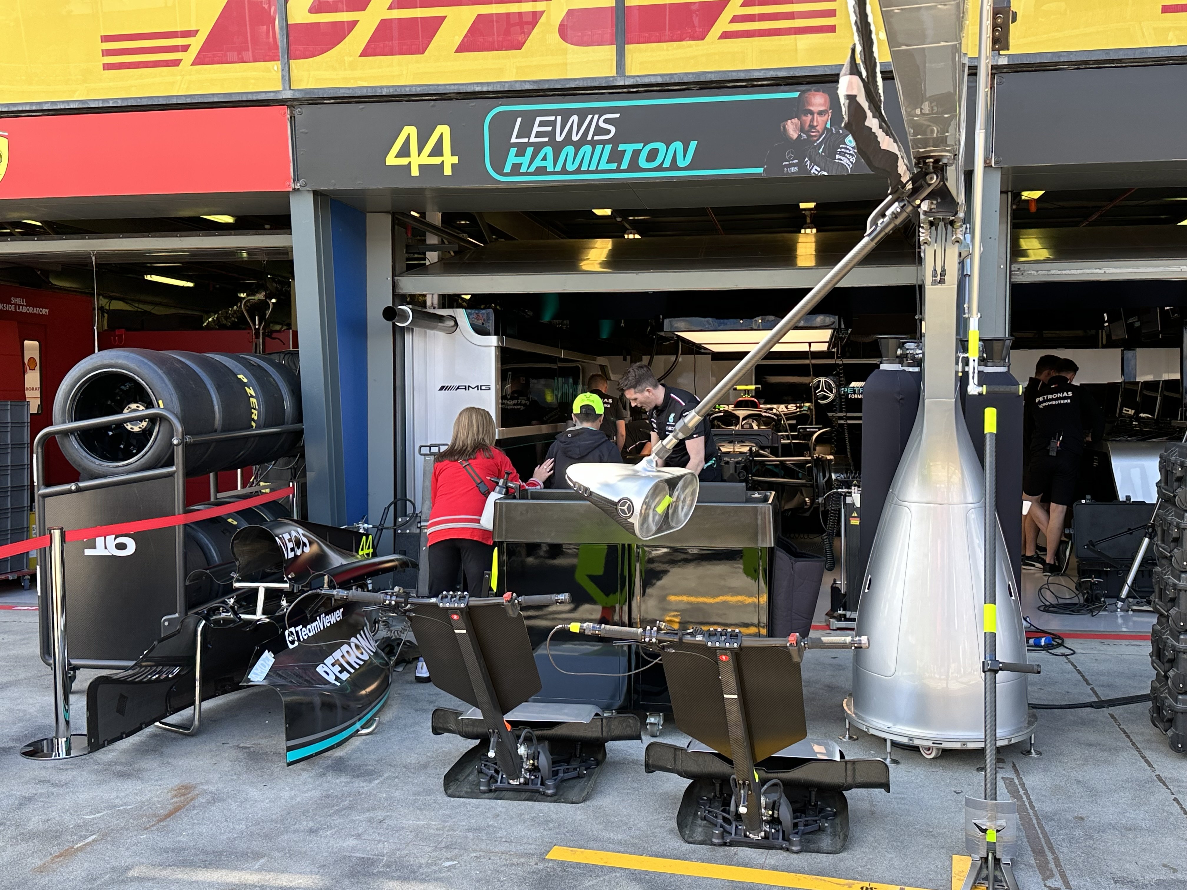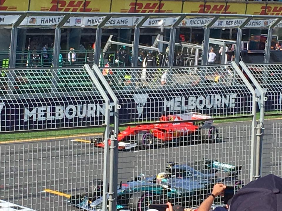 Lewis Hamilton , #44, Mercedes AMG Petronas Motorsport W08 EQ Power+ on pole at the 2017 Formula 1 Rolex Australian Grand Prix with Sebastian Vettel, #5, Scuderia Ferrari SF70H alongside the Briton in second place. Albert Park Street Circuit, Albert Park, Melbourne, Victoria, Australia.